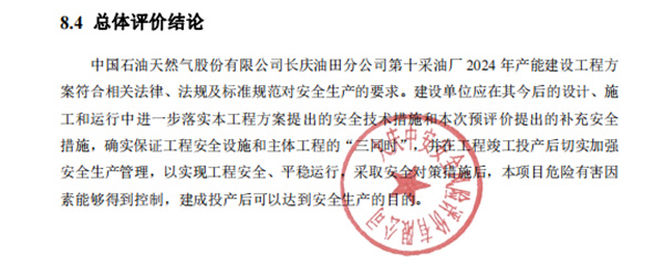 中国石油天然气股份有限公司长庆油田分公司第十采油厂2024年产能建设工程方案符合相关法律、法规及标准规范对安全生产的要求。建设单位应在其今后的设计、施工和运行中进一步落实本工程方案提出的安全技术措施和本次预评价提出的补充安全措施,确实保证工程安全设施和主体工程的“三同时”,并在工程竣工投产后切实加强安全生产管理,以实现工程安全、平稳运行,采取安全对策措施后,本项目危险有害因素能够得到控制,建成投产后可以达到安全生产的目的。 |