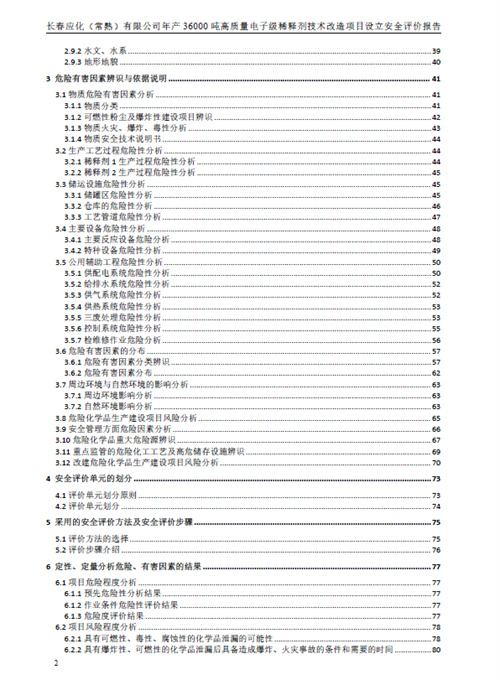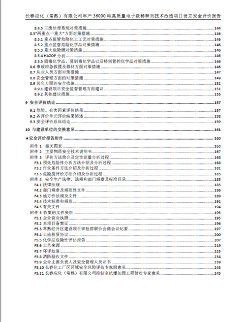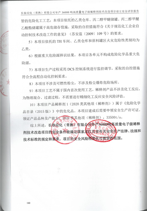 长春应化(常熟)有限公司年产36000吨高质量电子级稀释剂技术改造项目设立安全评价报告 |