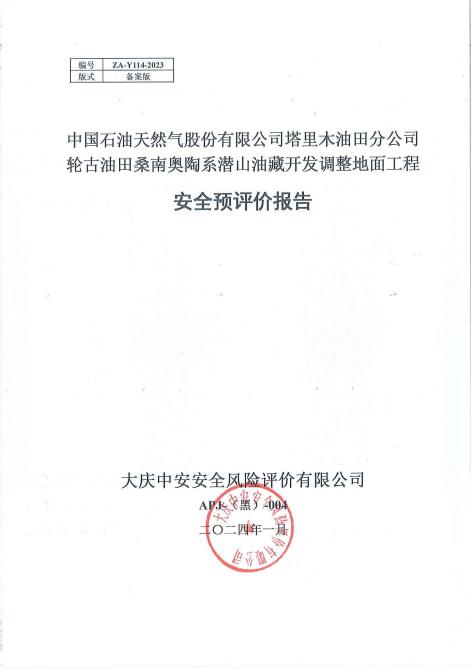 中国石油天然气股份有限公司塔里木油田分公司轮古油田桑南奥陶系潜山油 藏开发调整地面工程安全预评价报告