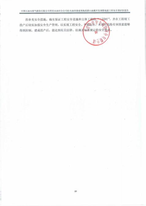 中国石油天然气股份有限公司塔里木油田分公司轮古油田桑南奥陶系潜山油 藏开发调整地面工程符合相关法律、法规及标准规范对安全生产的要求。建设 单位应在其今后的设计、施工和运行中进一步落实本工程方案提出的安全技术 措施和本次预评价提出的补充安全措施,确实保证工程安全设施和主体工程的 “三同时 ”,并在工程竣工投产后切实加强安全生产管理, 以实现工程安全、 平稳运行,本项目危险有害因素能够得到控制,建成投产后,能达到有关法律、 法规及标准规定的安全要求。 |