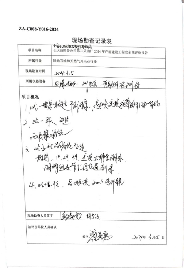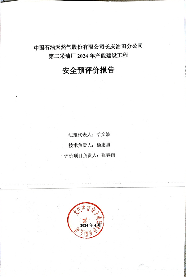 中国石油天然气股份有限公司长庆油田分公司第二采油厂2024年产能建设工程安全预评价 |