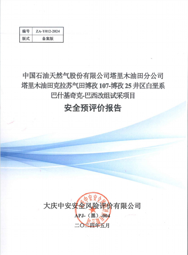 中国石油天然气股份有限公司塔里木油田分公司塔里木油田克拉苏气田博孜107-博孜25井区白垩系巴什基奇克-巴西改组试采项目安全预评价报告