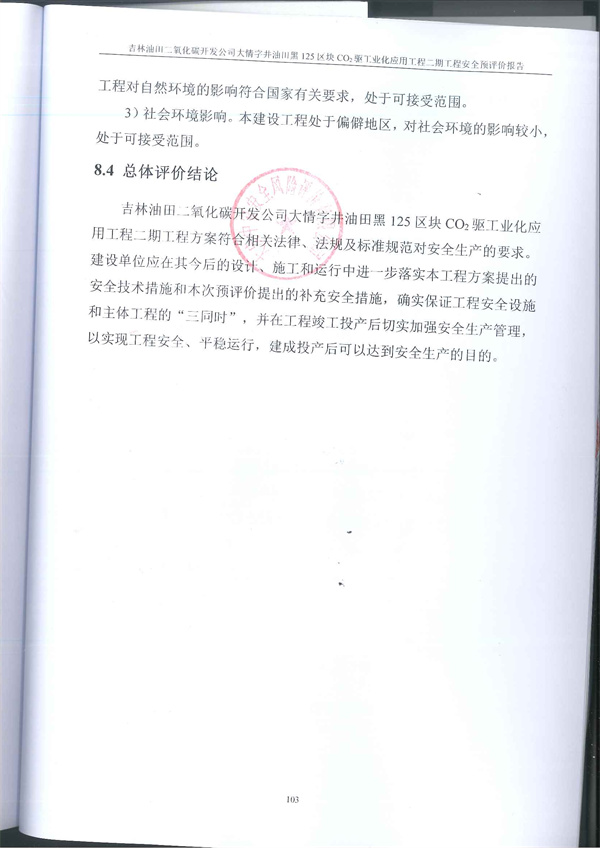 吉林油田二氧化碳开发公司大情字井油田黑125区块CO2驱工业化应用工程二期工程安全预评价报告 |