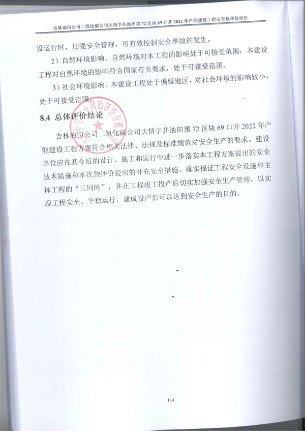 吉林油田二氧化碳开发公司大情字井油田黑72区块69口井2022年产能建设工程安全预评价报告 |