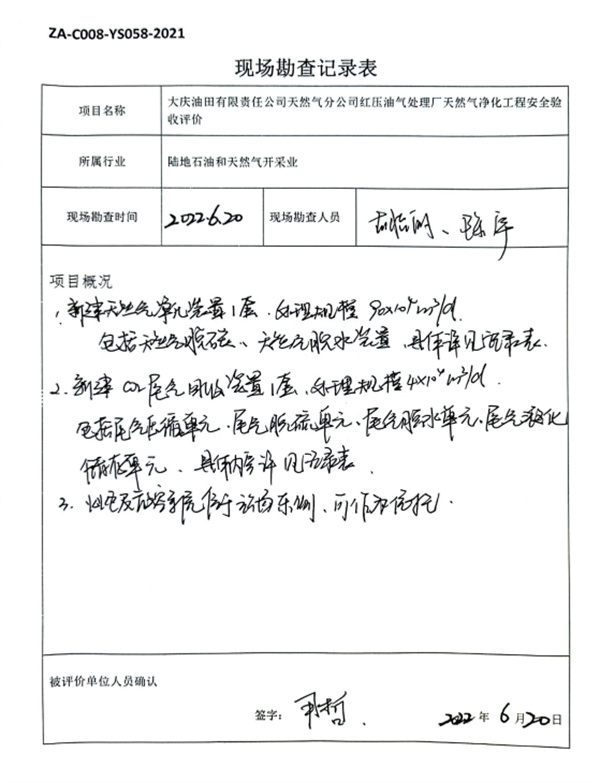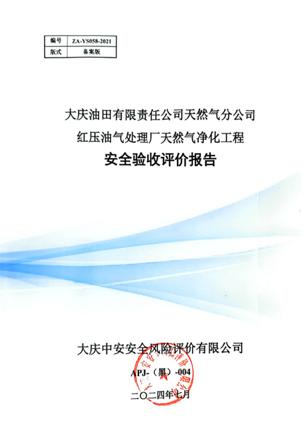 大庆油田有限责任公司天然气分公司红压油气处理厂天然气净化工程安全验收评价报告 |