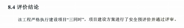 该工程严格执行建设项目“三同时”,项目建设方案进行了安全预评价并通过评审。该工程项目从初步设计到项目的施工建设,从装置的开工投产到试运行阶段,安全措施合理可行,齐全有效,并在设计和施工中得到落实、实施。 通过现场安全评价,对评价单位通过安全检查和评价发现的3个问题,天然气分公司均能认真对待,积极整改,现已整改完成。 结论:大庆油田有限责任公司天然气分公司红压油气处理厂天然气净化工程安全设施符合“三同时”要求,试运行情况良好,安全生产管理有效,具备安全验收的条件。 |
