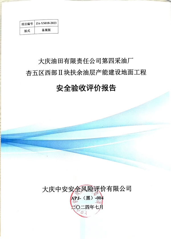 大庆油田有限责任公司第四采油厂杏五区西部ⅱ块扶余油层产能建设地面工程安全验收评价报告 |