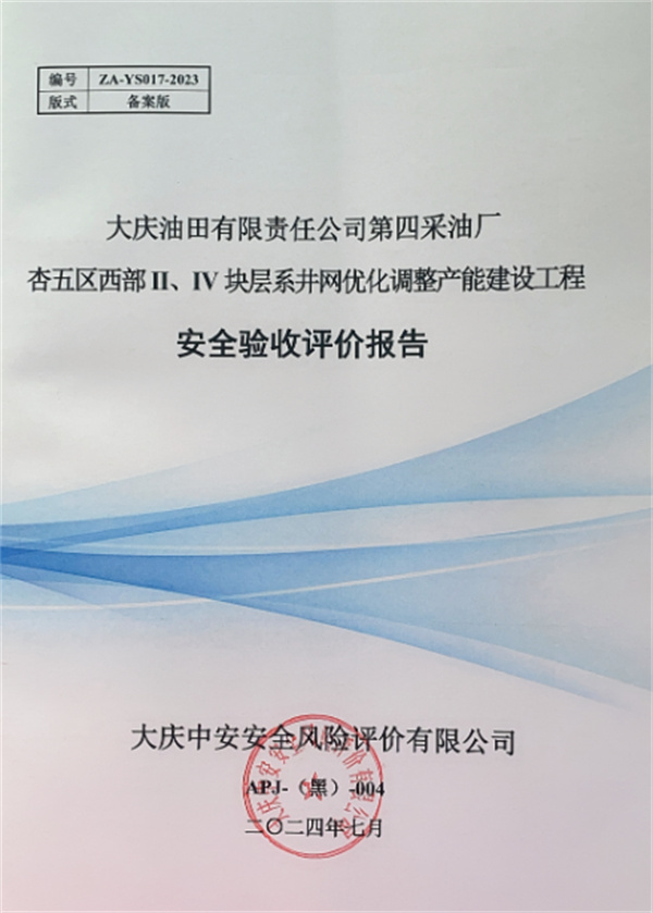 大庆油田有限责任公司第四采油厂杏五区西部II、IV块层系井网优化调整产能建设工程安全验收评价报告 |