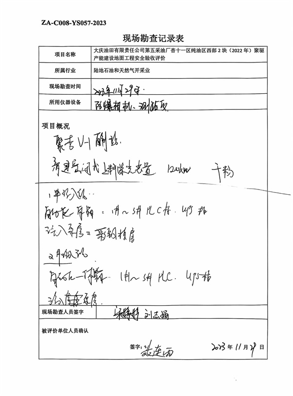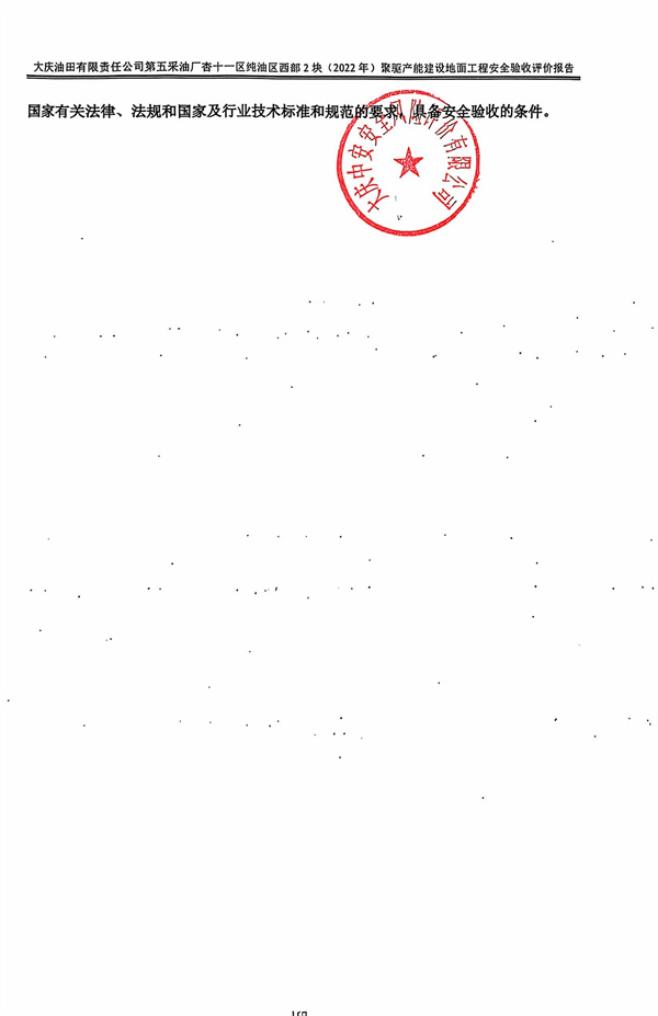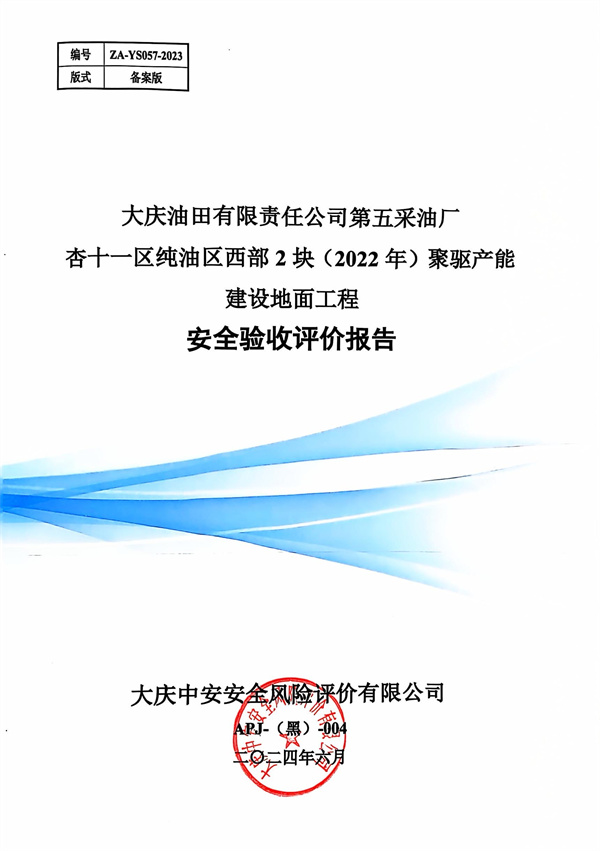 大庆油田有限责任公司第五采油厂杏十一区纯油区西部2块(2022年)聚驱产能建设地面工程安全验收评价报告 |