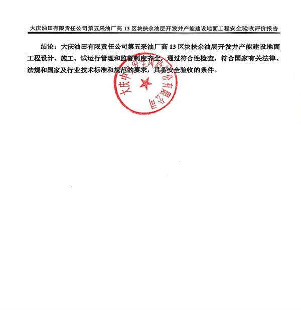 大庆油田有限责任公司第五采油厂高13区块扶余油层开发井产能建设地面工程安全验收评价报告 |